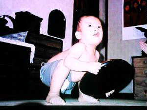 誕生日には2kgのおもちを持つんだって、お父さんの手がガッツと・・!!。